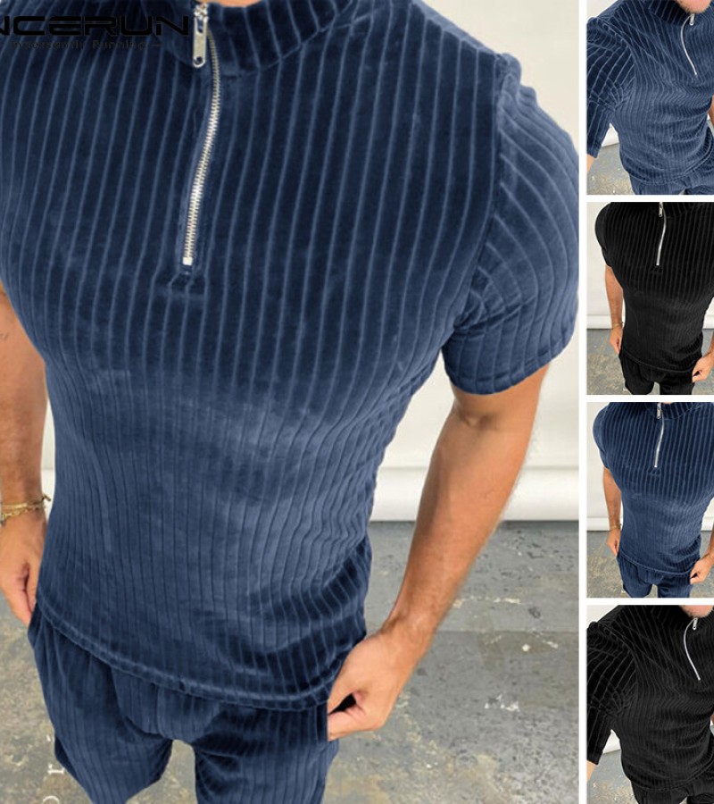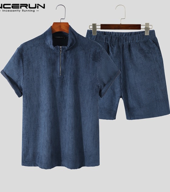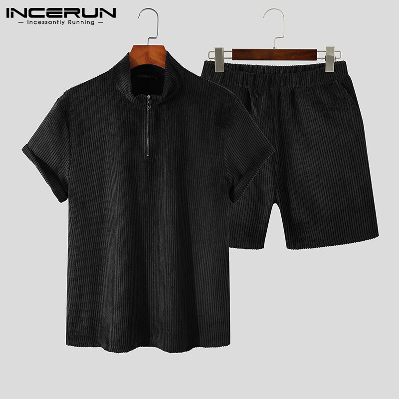 Beehoo INCERUN男式短袖拉链套装短裤适合睡衣内衣(西式)