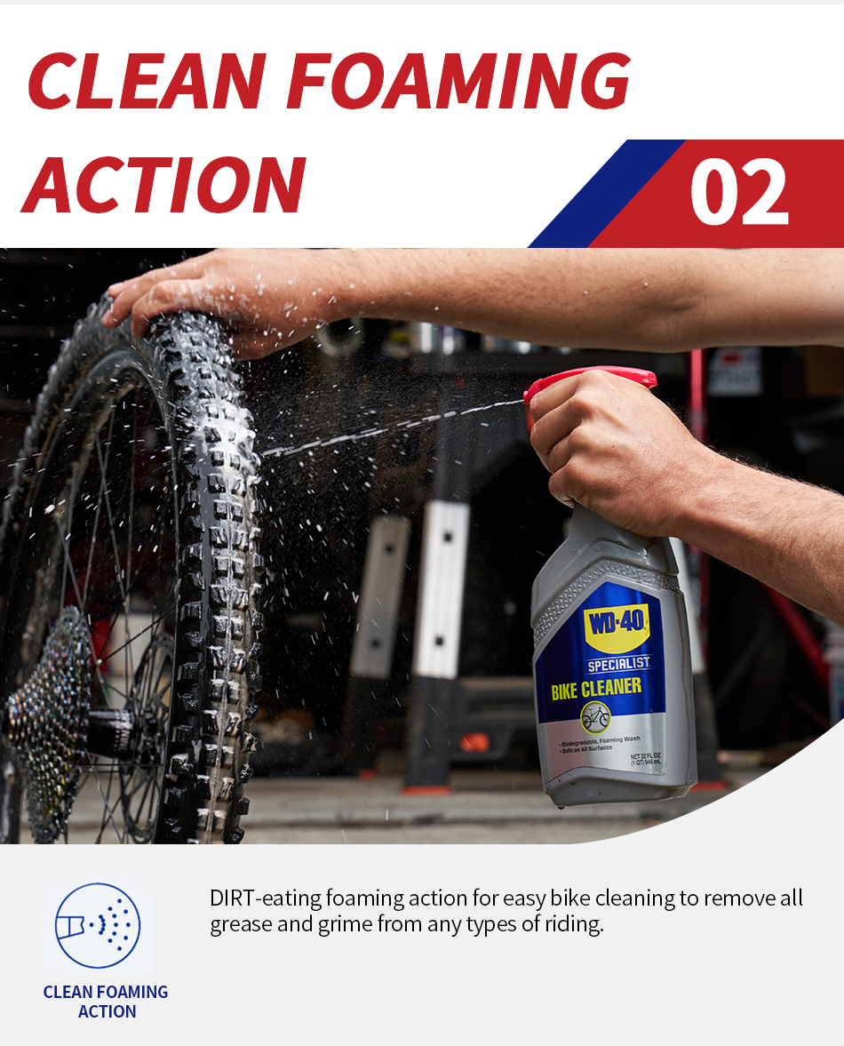WD-40 Specialist® Bike Cleaner is a biodegradable foaming wash that is easy-to-use and safe on all parts and surfaces. Experience the difference of a professional-grade formula that is powerful enough to help remove embedded grease and grime to prevent component wear, damage and surface scratching. Developed for cyclists and mechanics who love keeping their ride in top condition.