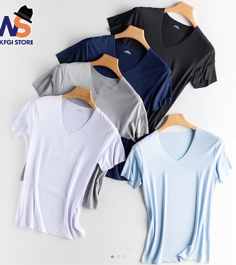 KYUSHUAD冰丝无缝男式短袖T恤V领夏季薄弹力上衣网眼快干