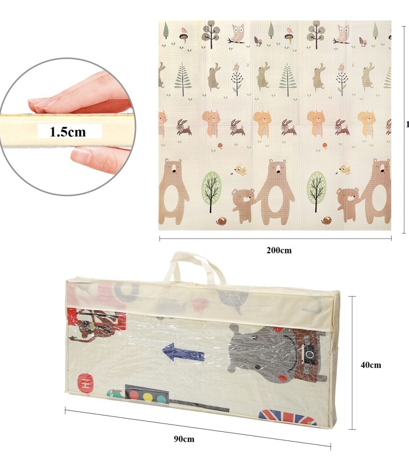 最便宜的!!!Bean Estore[200x180x1.5cm]婴儿XPE厚折叠游戏垫地板垫泡沫游戏垫无毒折叠防水爬行垫