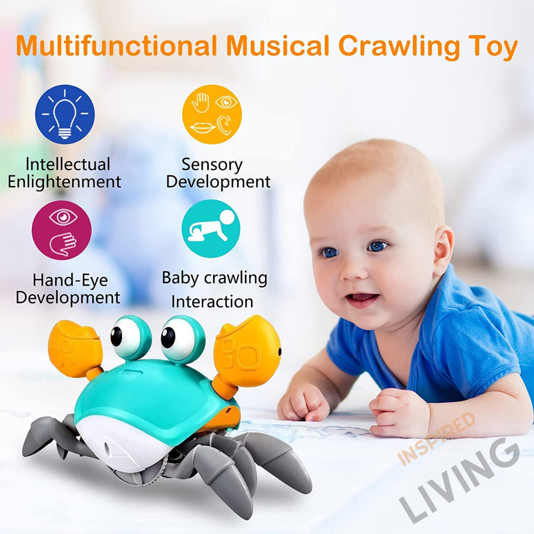 爬行螃蟹婴儿玩具-通过音乐和灯光自动避开障碍|圣诞礼物|圣诞礼物/生日礼物