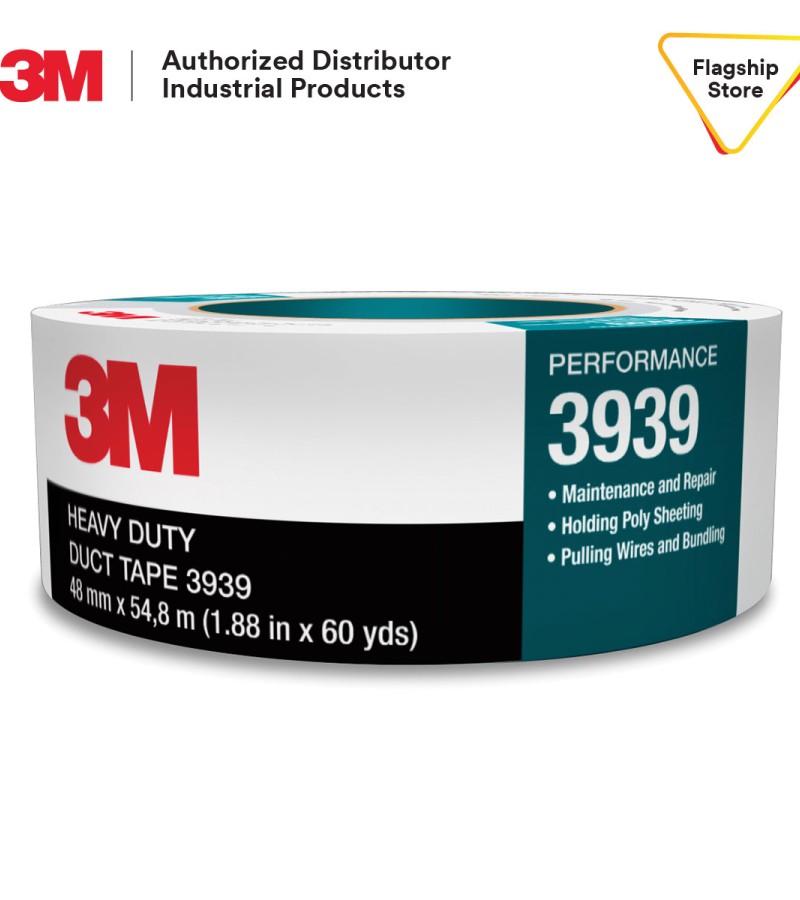 Constructed of polyethylene film laminated to cloth with a rubber adhesive, this durable tape resists curling and tears off the roll cleanly for easy application in MRO/construction. Our 3M™ Heavy Duty Duct Tape 3939 has a unique construction that allows for permanent and temporary applications.